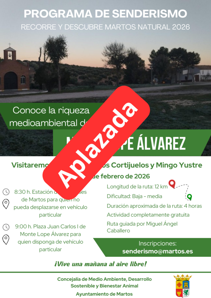 Aplazada la ruta de senderismo prevista para el domingo 1 de febrero por Monte Lope Álvarez por condiciones meteorológicas adversas. Perdonad las molestias