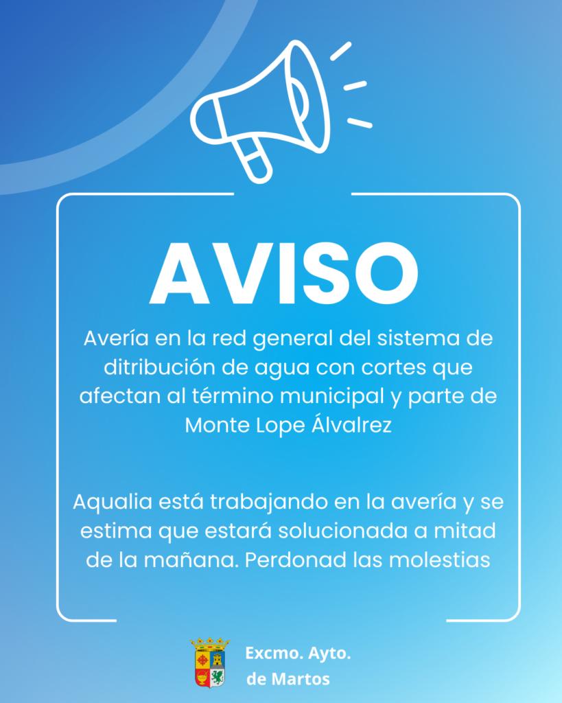 Aqualia está trabajando en la solución y se estima que el servicio se restablecerá a media mañana. Gracias y perdonad las molestias.