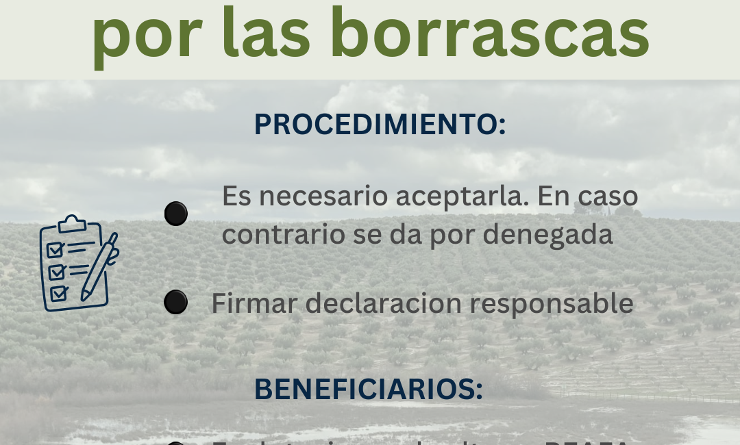 Últimos días para pedir las ayudas del Gobierno de España para paliar los efectos de las borrascas. Si eres agricultor o agricultora y te has visto afectado puedes solicitarla. Puedes recibir entre 5.000€ y 25.000 euros