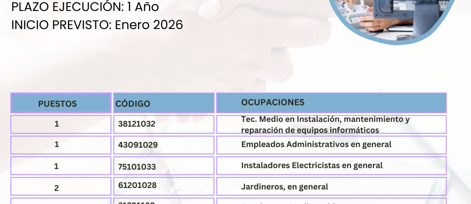 - 1 contrato de Técnico Medio en Instalación, mantenimiento y reparación de equipos informáticos.