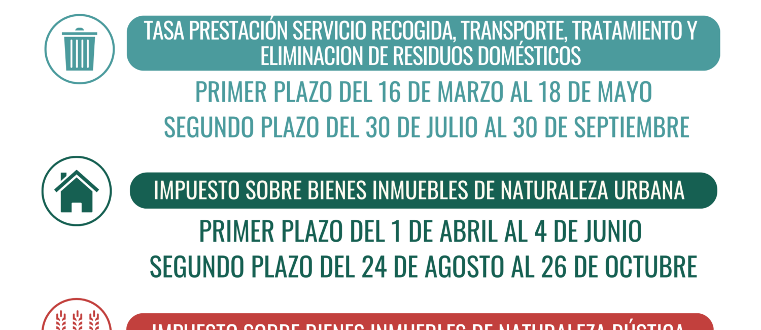 5.- Impuesto sobre Bienes Inmuebles de naturaleza rústica: desde el 24 de agosto hasta el 26 de octubre de 2026.