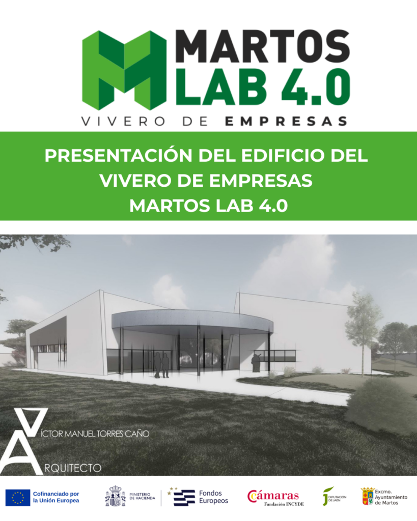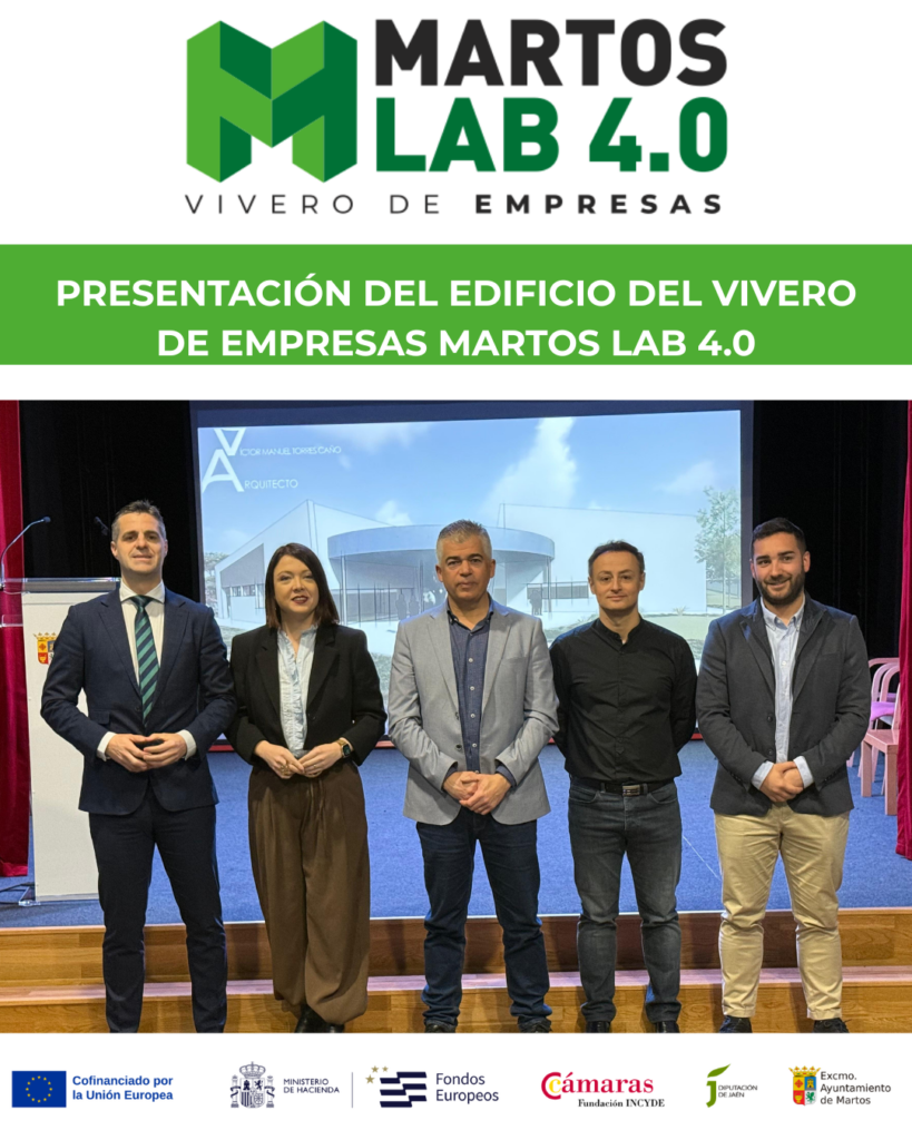 El Ayuntamiento de Martos ha presentado hoy el proyecto del futuro Vivero de Empresas Martos Lab 4.0, una infraestructura destinada a fomentar el emprendimiento, la innovación tecnológica y el fortalecimiento del tejido productivo local. La iniciativa, que tendrá una inversión superior a 1.7 millones de euros está promovida por el Ayuntamiento de Martos y cofinanciada en un 85 % por el Fondo Europeo de Desarrollo Regional (FEDER), en el marco del Programa Plurirregional de España FEDER 2021-2027, a través de la Fundación Incyde, y con una aportación del 15% por parte de la Diputación Provincial de Jaén.