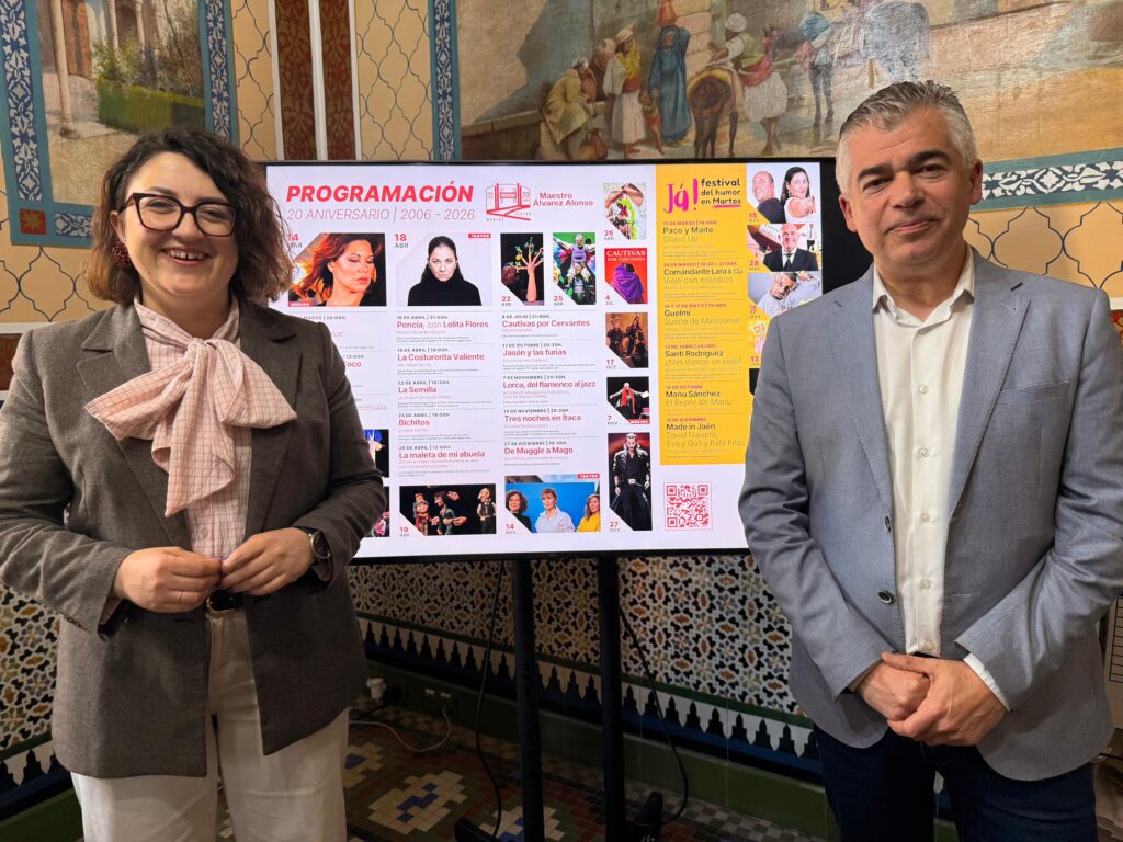 Por su parte, la concejala de Cultura, Elena Molina, subrayó que una de las principales novedades será el primer Festival del Humor en Martos, una propuesta que nace de la demanda del propio público. “Es una de las iniciativas que más ilusión nos hace. Queríamos hacer algo especial en este 20 aniversario y este festival “Ja” es el plato fuerte de la programación. Es un festival que nace para quedarse”, explicó. Así, el cartel reunirá a algunos de los humoristas más reconocidos del panorama actual. El cabeza de cartel será Manu Sánchez, además de otros como Comandante Lara, David Navarro o Guelmi.