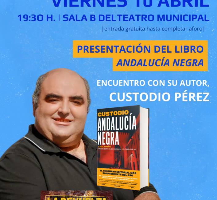 La programación del Mes del Libro 2026 continúa su apuesta por la diversidad de géneros con la presentación de ‘Andalucía negra’, la más reciente obra del escritor Custodio Pérez. El próximo viernes 10 de abril, a las 19:30 horas, los amantes del suspense y la narrativa con sello andaluz tienen una cita en la Sala B del Teatro Municipal Maestro Álvarez Alonso.