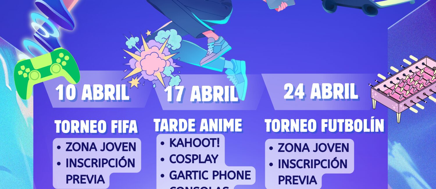 El 10 de abril, los aficionados a los videojuegos tendrán la oportunidad de participar en un torneo de FIFA, una actividad de ocio en un entorno. La programación continuará el 17 de abril con una tarde dedicada al anime, mientras que el 24 de abril se celebrará un torneo de futbolín en la zona joven.