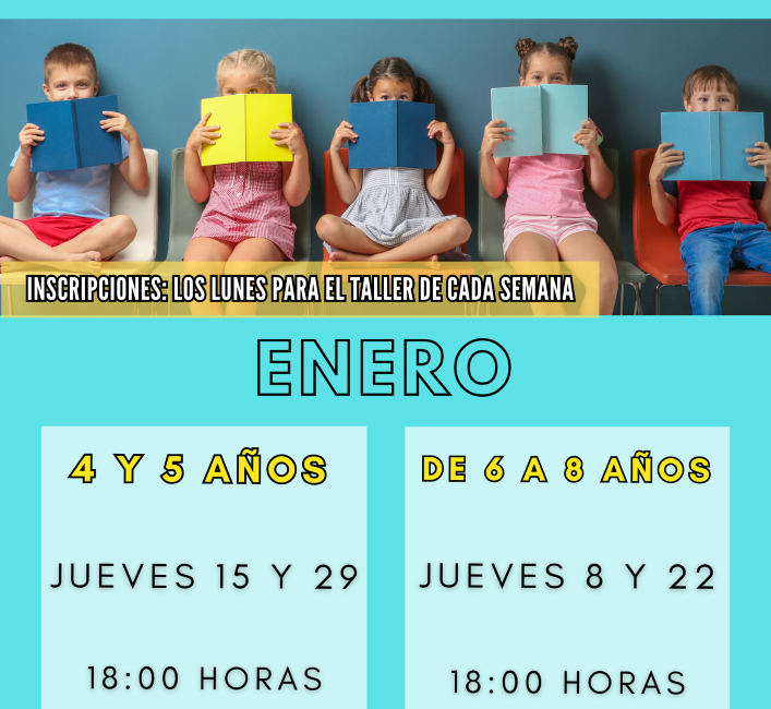• Niños y niñas de 6 a 8 años: El turno para este grupo de edad será los jueves 8 y 22 de enero. En estas sesiones, los participantes podrán profundizar en el mundo de los libros mediante actividades adaptadas a su nivel de desarrollo.