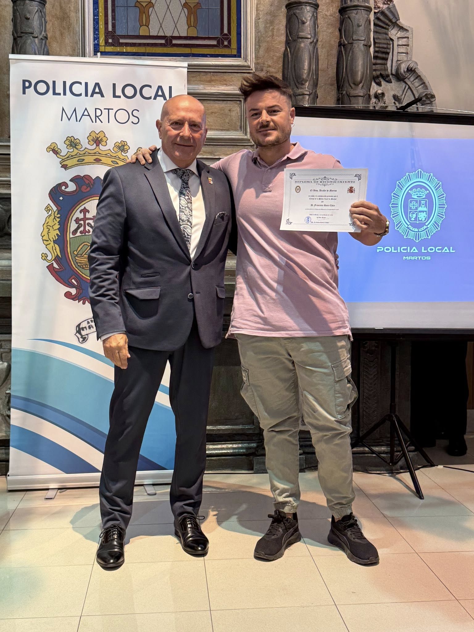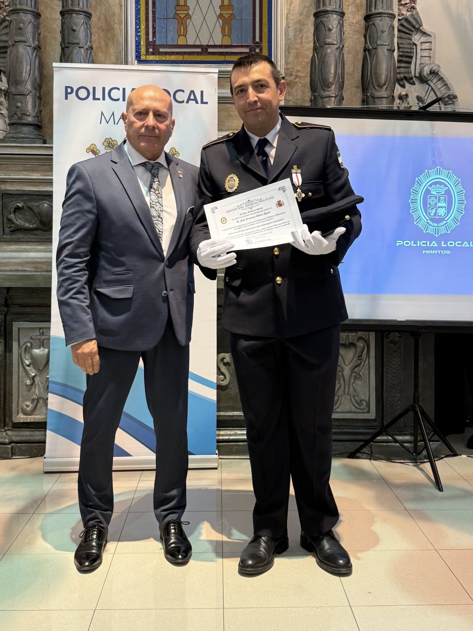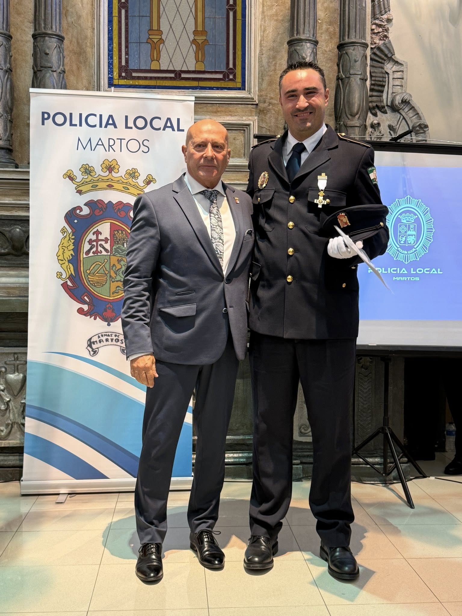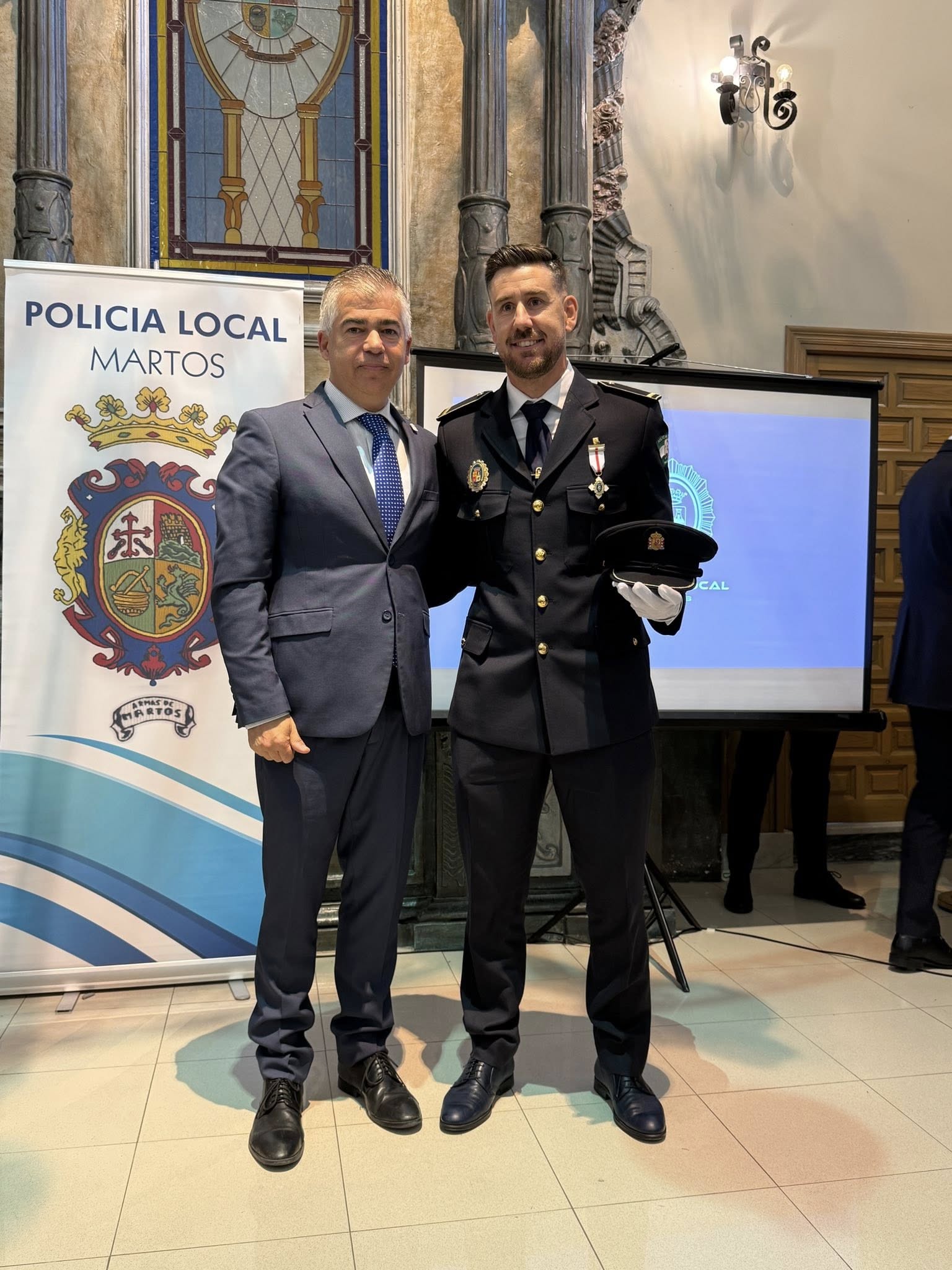 La ceremonia, enmarcada en la festividad de los Santos Ángeles Custodios, patrón de la Policía Local, ha tenido lugar en la Sala Cultural de San Juan de Dios y ha estado presidida por el alcalde de Martos, Emilio Torres; el concejal de Seguridad Ciudadana, Manolo Cortés; y el jefe de la Policía Local, Rafael González