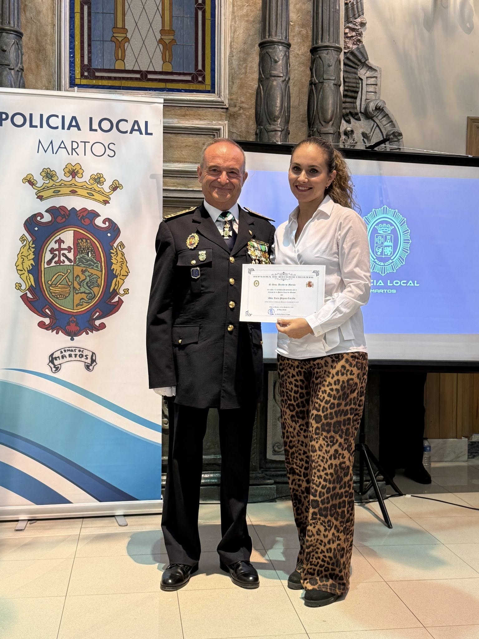 “Martos tiene el honor de contar con una Policía Local profesional y comprometida, que con su labor diaria y formación actualizada está preparada para afrontar los desafíos presentes y de futuro”, a lo que añadió “quiero expresar el orgullo y el agradecimiento que sentimos por vuestro trabajo, vuestra dedicación, entrega constante y sacrificio, con el único fin de ofrecer a nuestros vecinos y vecinas una mejor calidad de vida”.