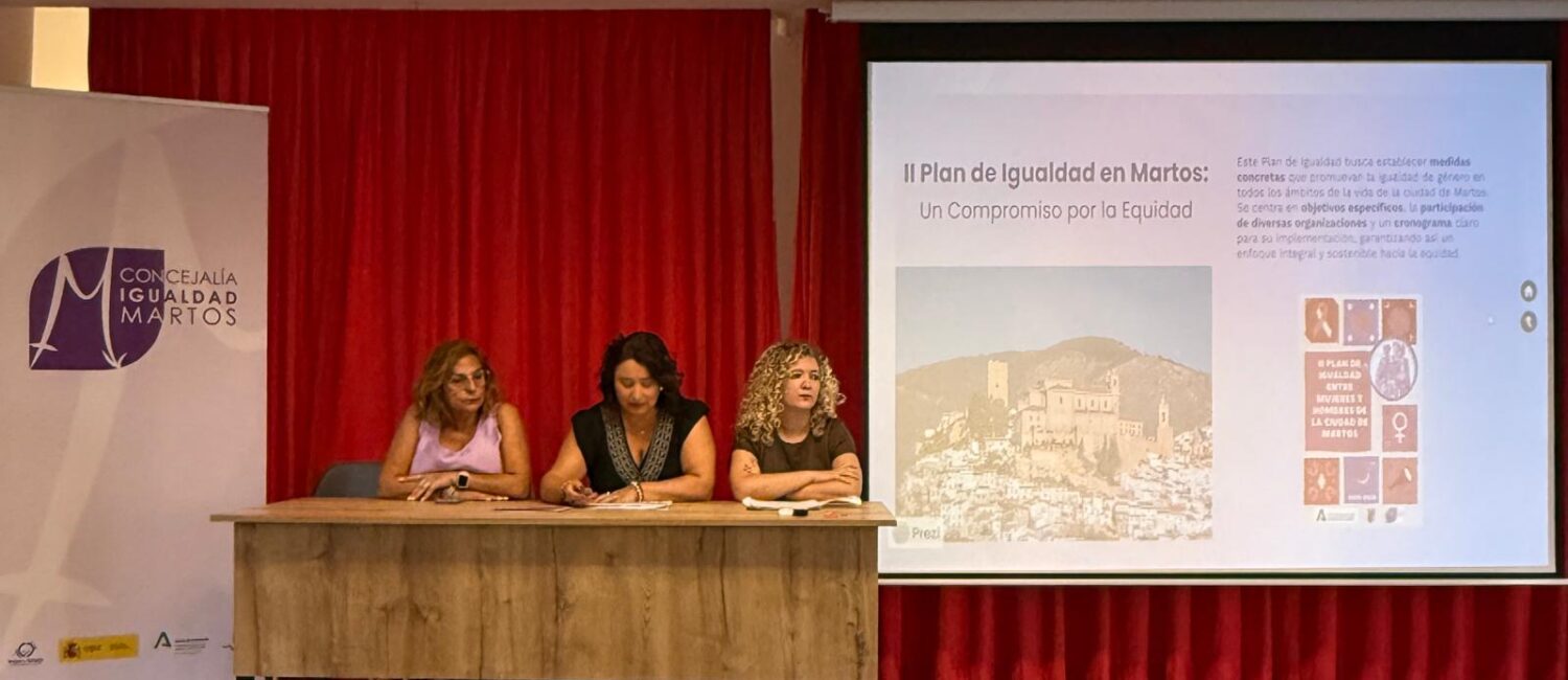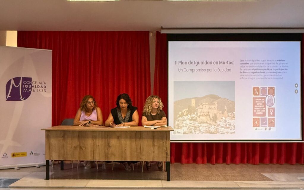 La concejala de Igualdad, Ana Matilde Expósito, acompañada de las técnicas del área, ha presentado hoy el II Plan de Igualdad entre Mujeres y Hombres de la Ciudad de Martos, una hoja de ruta que consolida el compromiso del Ayuntamiento con la igualdad y la inclusión social.