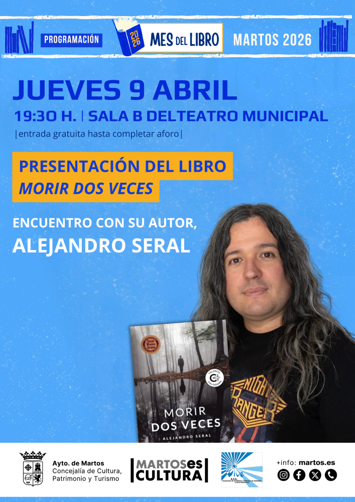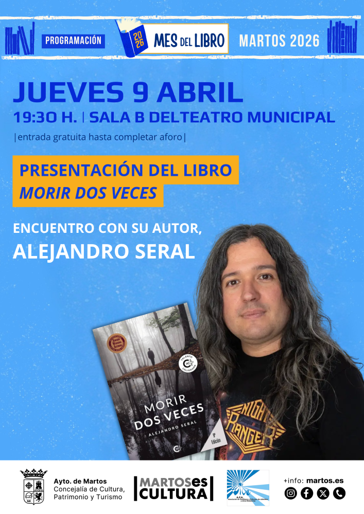 La programación cultural del Mes del Libro 2026 arranca con una de sus propuestas más profundas y necesarias. El próximo jueves 9 de abril, a las 19:30 horas, en la Sala B del Teatro Municipal Maestro Álvarez Alonso, el escritor Alejandro Seral presentará su obra ‘Morir dos veces’, un libro que explora con sensibilidad las huellas del olvido y la importancia de preservar la esencia del ser humano frente a la adversidad.