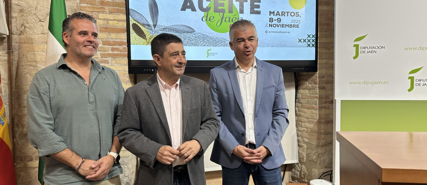 El alcalde de Martos, Emilio Torres, y el presidente de la Diputación Provincial, Paco Reyes, han presentado la Fiesta del Primer Aceite, que tendrá lugar en la ciudad de la Peña los próximos 8 y 9 de noviembre. En el acto también ha estado presente el concejal de Agricultura y Olivar, Juan Pérez. Serán dos jornadas intensas que servirán para proyectar y divulgar todas las bondades del sector.