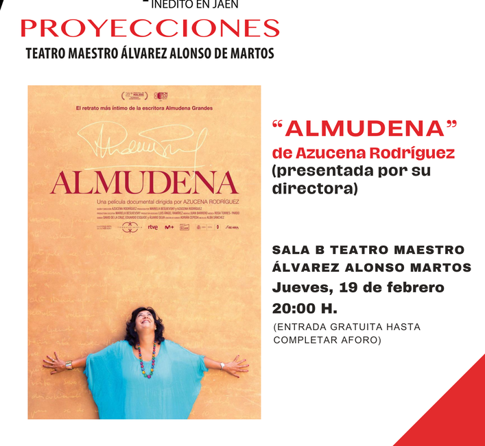 El próximo jueves 19 de febrero, a las 20:00 horas, en la Sala B del Teatro Municipal Maestro Álvarez Alonso, se proyectará el documental ‘Almudena’, una de las propuestas de la Muestra de Cine Español Inédito en Jaén, organizada por la Diputación de Jaén, que profundiza en la vida y el legado de la inolvidable escritora Almudena Grandes.