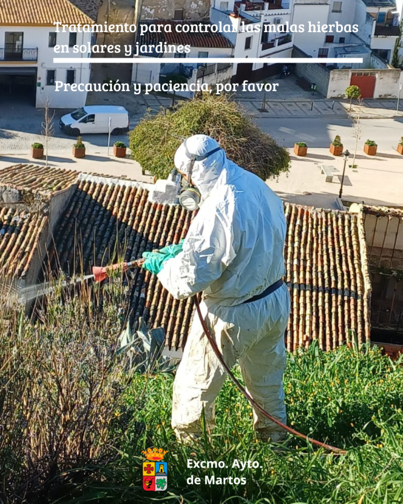 La Concejalía de Servicios ha comenzado hoy los trabajos para mejorar la salubridad y el aspecto de las zonas señaladas. Se estima que las labores se prolongarán hasta mediados de la próxima semana. Extremad las precauciones. El plazo de seguridad es de 24 a 48 horas, por lo que es fundamental evitar esos lugares. Poned especial cuidado con las mascotas. Paciencia porque esta tarea beneficia a marteños y marteñas. Se están señalizando y precintando las zonas afectadas. El lunes 2 de marzo se actuará en el entorno de la ermita de la Virgen de la Victoria, en las zonas del Calvario y de los depósitos de agua.