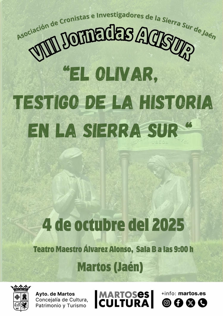 La Asociación de Cronistas e Investigadores de la Sierra Sur de Jaén (ACISUR) invita a participar en sus VIII Jornadas, un evento que este año se centrará en el papel histórico del olivar en la región.